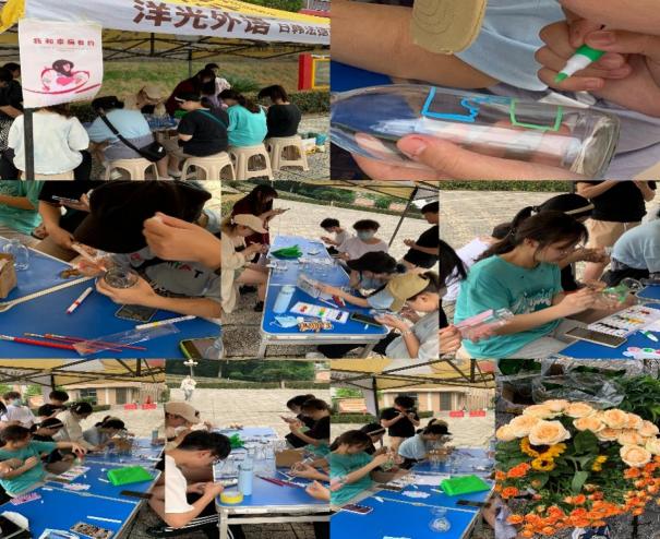 “画出心中的美好”DIY瓶画活动在红楼前坪进行。参与活动的同学们现场挑选自己喜欢的瓶子,绘上喜欢的图案或写上文字,再挑选上喜爱的植物放入瓶内,有小巧可爱的多肉,有绿意盎然的水培植物,也有娇艳美丽的花朵,当作品完成,同学们纷纷拍照留恋。活动现场气氛热烈,一片欢声笑语。