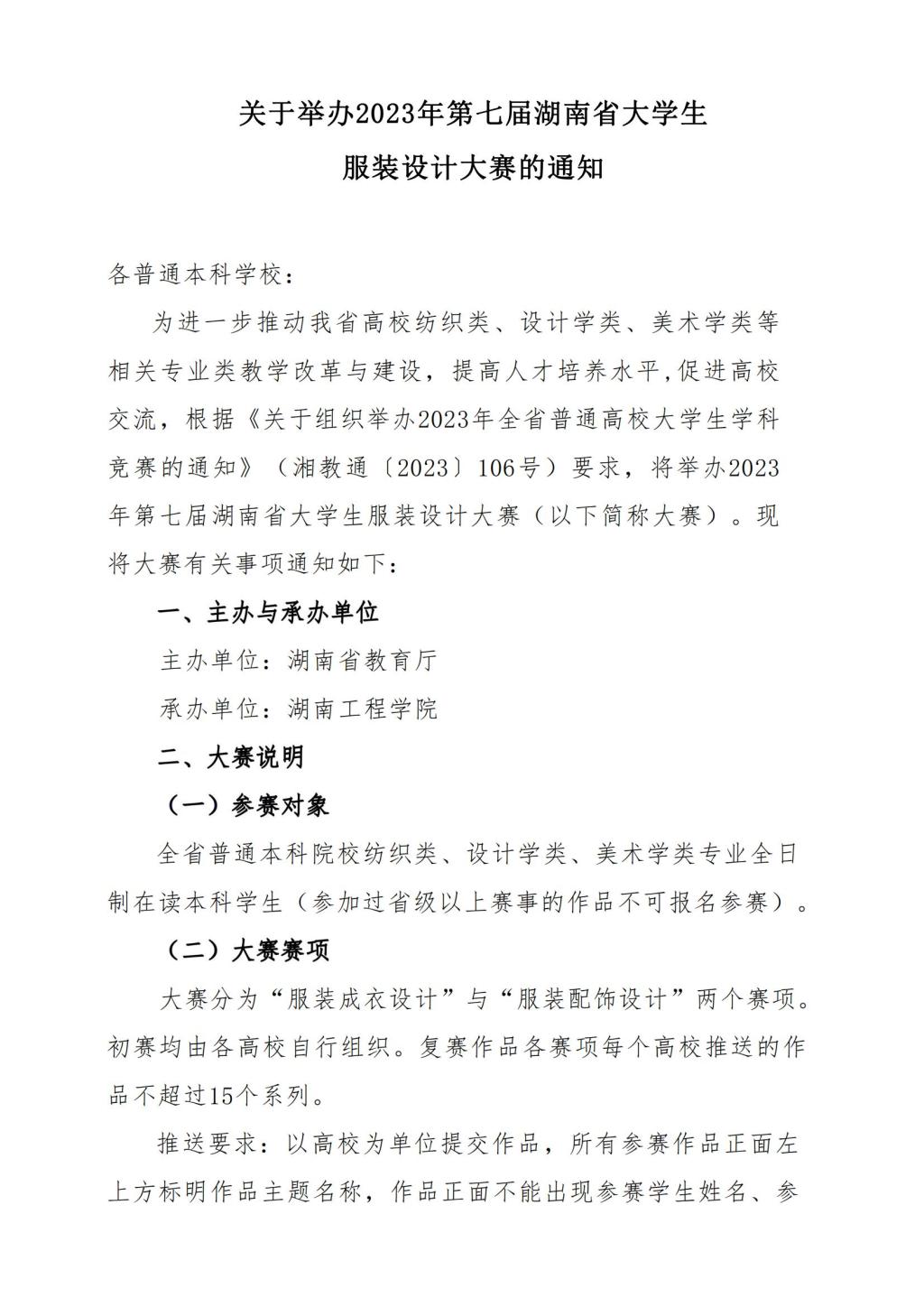 2023年第七届湖南省大学生服装设计大赛通知暨bw必威西汉姆联官网分赛区初赛入围名单公示