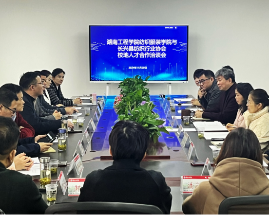 首先,李爱国对长兴县纺织行业协会一行的到来表示热烈欢迎,并介绍了学院在学科建设、人才培养、科学研究、服务社会和文化传承等方面的成果和贡献。他表示,学院目前正处在高质量发展的关键时期,希望未来双方能在校企、校地人才培养方面进一步加强交流合作。接着,姚建忠详细介绍了长兴县概况、经济产业发展、人才需求及人才引进相关政策,希望双方能持续加强合作交流,并表示热烈欢迎同学们到长兴县实习、就业、创业。随后,姚锄强对长兴县纺织行业发展状况及整体布局进行了详细介绍,各企业负责人介绍了企业对人才的需求情况。双方深入沟通交流后,签署了校地行业人才智力项目战略合作协议。