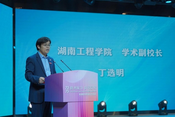 丁选明副校长致辞欢迎与会嘉宾。他表示,学校始终高度重视产教融合,致力于推动教育链、人才链与产业链的有机衔接。期待以此次活动为契机进一步深化与株洲服饰产业的合作,共同培育适应行业需求的高素质应用型人才,为株洲乃至湖南服饰产业的高质量发展持续注入创新动能。