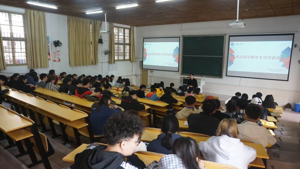 12月12日中午12点10分,Betway必威西汉姆联考试诚信教育专项月讲评在电教105举行。此次月讲评由张轶老师负责主讲,各班班委、参加346级英语考试的学生以及学生会的干部参加此次会议。