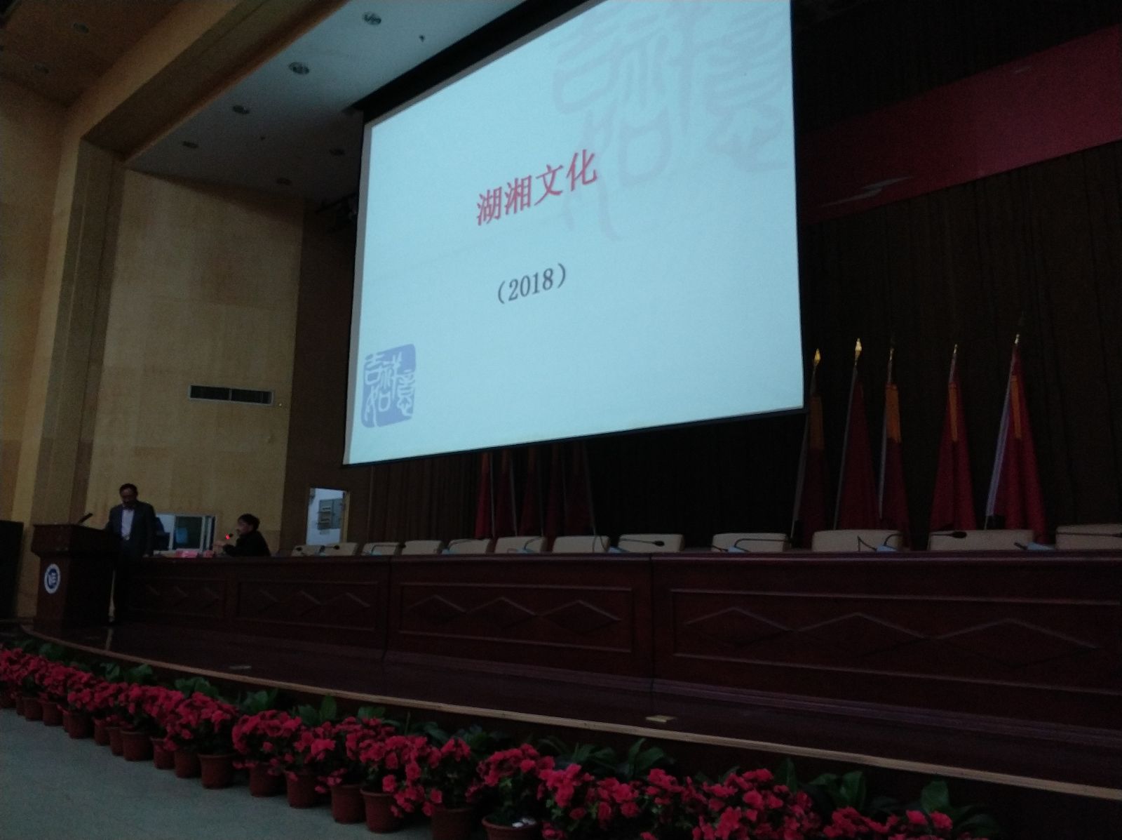 郑焱从"湖湘"词源讲起,从三皇五帝到近代,分别介绍历朝历代代表性的文物和文人墨客如何推动着湖湘文化的发展,让在座的湖湘学子倍感自豪。然后郑教授精评历史名人,讲述屈原、贾谊、范仲淹、柳宗元、左宗棠等人对湖湘文化的发展与湖湘精神的传承做出的重大贡献,以及近代"我自横刀向天笑"的谭嗣同、辛亥革命的实干者黄兴、"为四万万人争人格"的蔡锷等革命者尽显"心忧天下、敢为人先"的湖湘精神。最后郑教授介绍了中国传统节日的来源及其深刻的感恩寓意,呼吁大家常怀感恩之心。