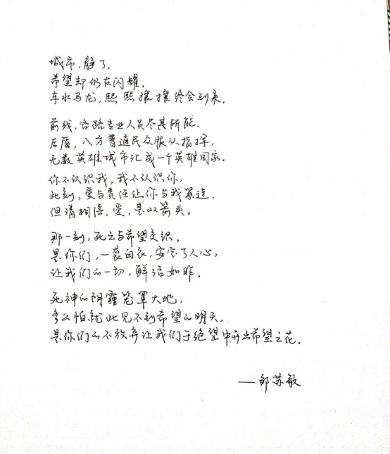 2020年5月28日,Betway必威西汉姆联举办三行情书献抗疫英雄线上征集活动,面向bw必威西汉姆联官网全体同学征集,旨在以三行情书的形式,让同学们用笔墨书写最动情,最真心地话语,献给奋斗在抗战一线的抗疫英雄。