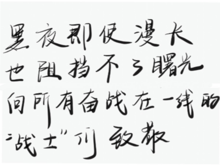 本次“三行情书”征文活动,在本校获得极大反响,不仅展现我们学生爱国热情,还展现我们学生祝愿我们的同胞幸福安康,希望疫情早点结束的期盼。