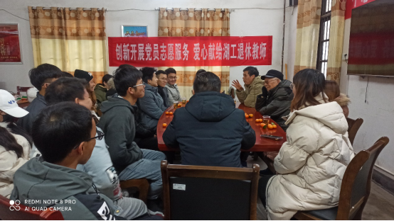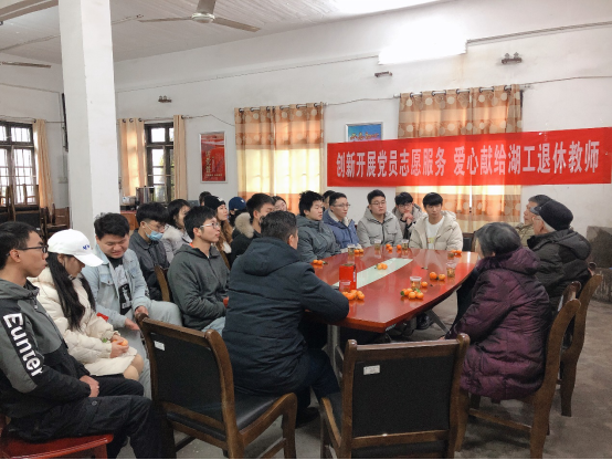 座谈会开始之前学生支部对老年活动中心进行了卫生打扫,随后全体活动学生和活动教师围绕着三老交流学习经历以及认真倾听三位退休教师讲解湖工历史和他们的工作经历,三位退休教师的故事都激励了我们要努力学习专业知识,培养艰苦奋斗精神。