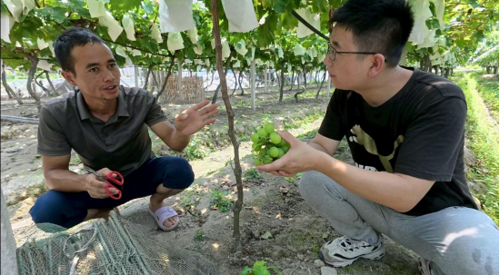 “大家看这颗‘宝石’的色泽,咬下去会有爆汁感!”团队搭建的临时直播间里,志愿者主播钟师琦举着葡萄在手机镜头前熟练展示产品。为提升传播效果,学生们制作了短视频,通过延时摄影展现果实生长过程,结合农户口述的种植故事,让消费者直观感受“匠心种植”的全链条。