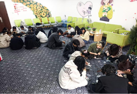 DIY手链作为艺术治疗方式,为同学们提供了释放内心的窗口。制作过程中,大家放下手机,专注投入,一粒粒珠子在手中穿梭,串成承载情感的手链。服设2303班马逸菲分享道:“把烦恼‘串’进手链,感觉轻松多了。”纺工2404班段玉媗表示:“亲手制作的手链,让我仿佛‘串’起了内心的力量。”