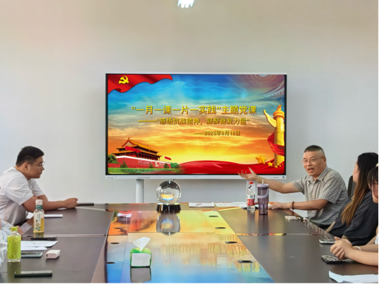 为铭记历史、缅怀先烈,活动最后,全体党员共同观看了爱国教育专题片《收藏重温!纪念抗战胜利80周年大会完整视频》。2025年9月3日大会的盛况和阅兵仪式的壮观场面,极大地激发了大家的民族自豪感和历史使命感。大家纷纷表示要继承和发扬伟大抗战精神,将活动中凝聚的感动与收获转化为刻苦学习、实干报国的强大动力,为实现中华民族的伟大复兴贡献青春力量。